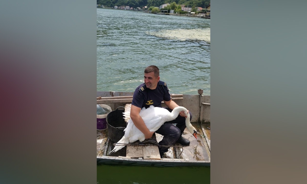“În data de 09.08.2024, ora 12.00, polițiștii de frontieră din cadrul Sectorului Poliției de Frontieră Orșova- I.T.P.F. Timișoara au fost informați telefonic de către un cetățean despre faptul că, în zona Golfului Dubova, în apropiere de mal se află o lebădă rănită. Echipajul navei MAI 4104 s-a deplasat imediat în zona Golfului Dubova pentru a salva lebăda de pe fluviul Dunărea.” Transmite poliția de frontieră din Mehedinți