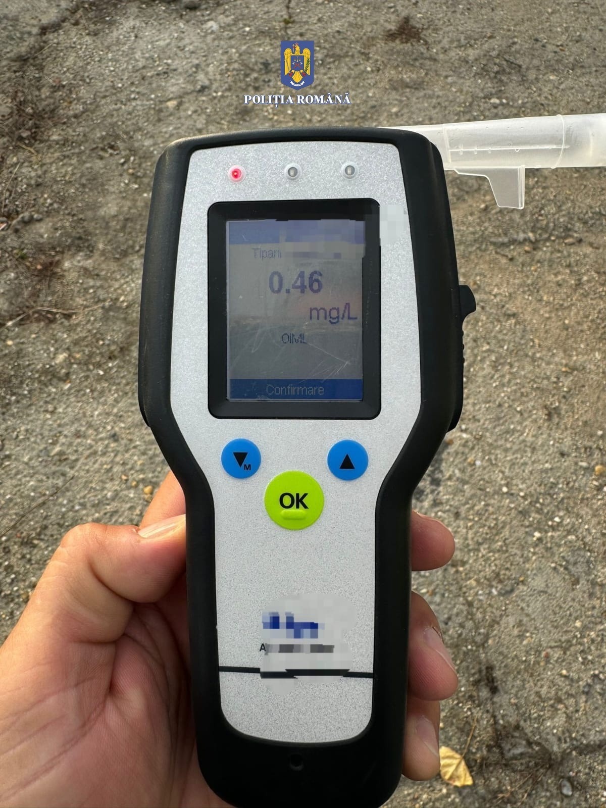 Conducătorul auto a fost testat cu aparatura din dotare, rezultând 0,46 mg/l alcool pur în aerul expirat.