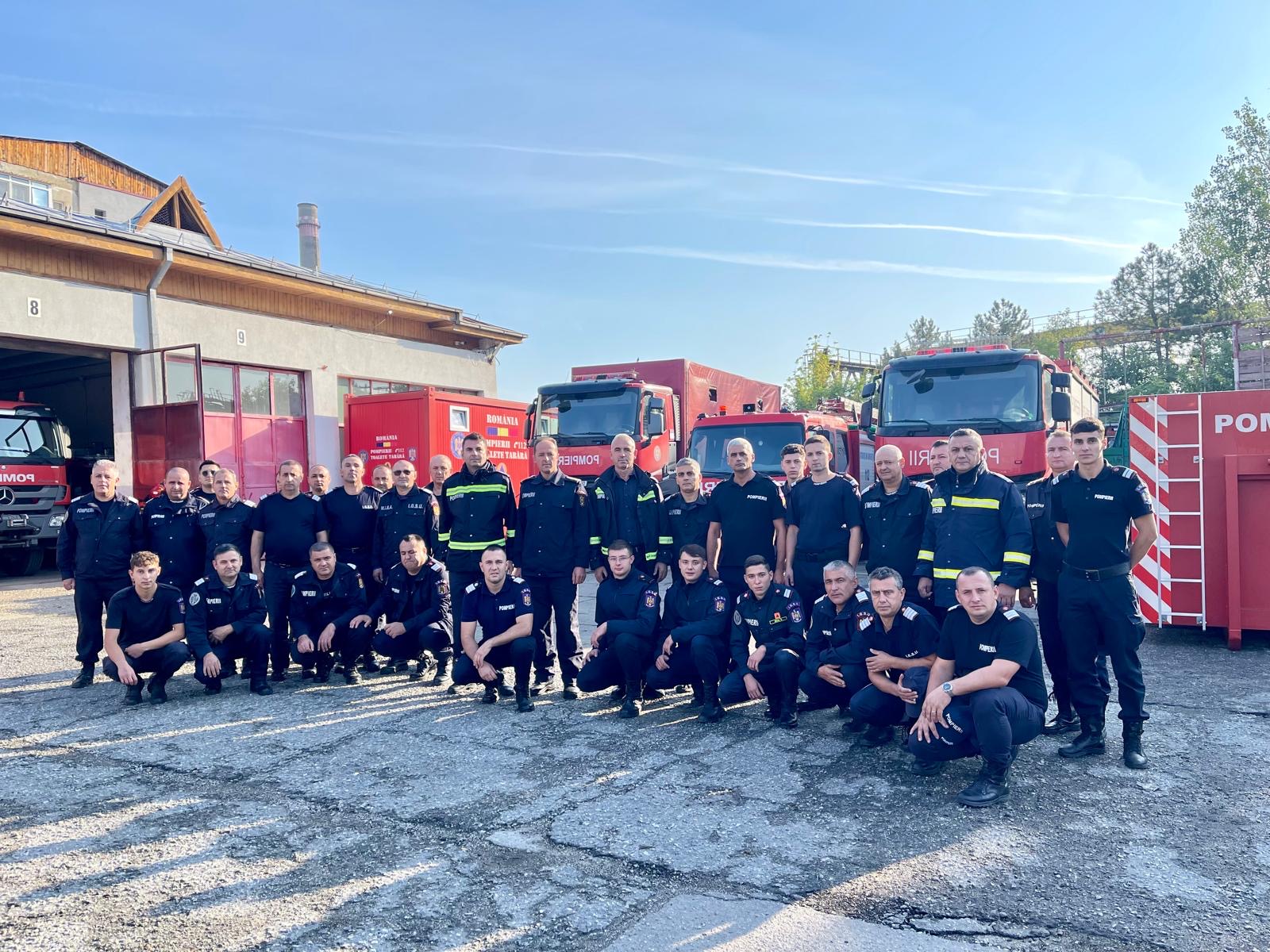 Astfel, au fost trimise două microbuze pentru transportul personalului, o autospecială de primă intervenție și comandă, alături de 34 de cadre specializate, dintre care 2 ofițeri și 32 de subofițeri.