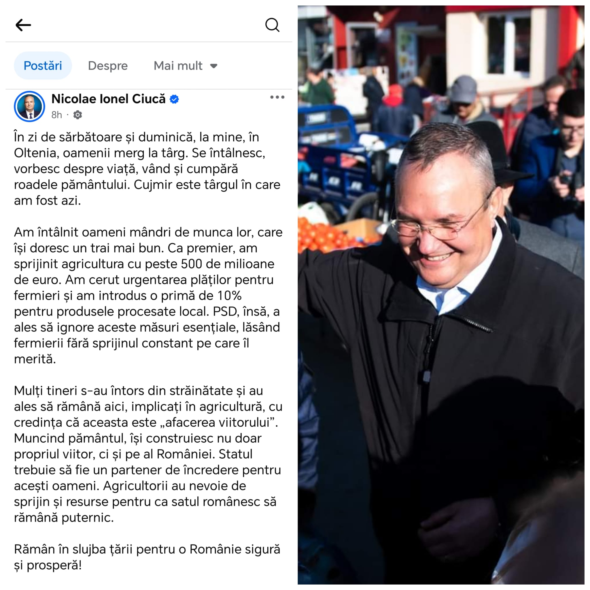 ” Veni Ciucă “al lor” “aci”, la târg la Cujmir, cu aghiotanți cu tot, să le spună fermierilor că el este oltean, doar că fermierii din Mehedinți își dezvoltă afacerile și aduc produse proaspete și sănătoase pe piețe, în urma programelor implementate de PSD, în piețele deschise de PSD, după deciziile proaste ale PNL, de a le închide în pandemie, care pe mulți i-au adus în pragul falimentului. Și după ce a obosit plimbându-se prin târg, s-a pus să laude Organizația PNL Mehedinți pentru “succesul răsunător” pe care l-a avut după precedenta vizită de la locale.