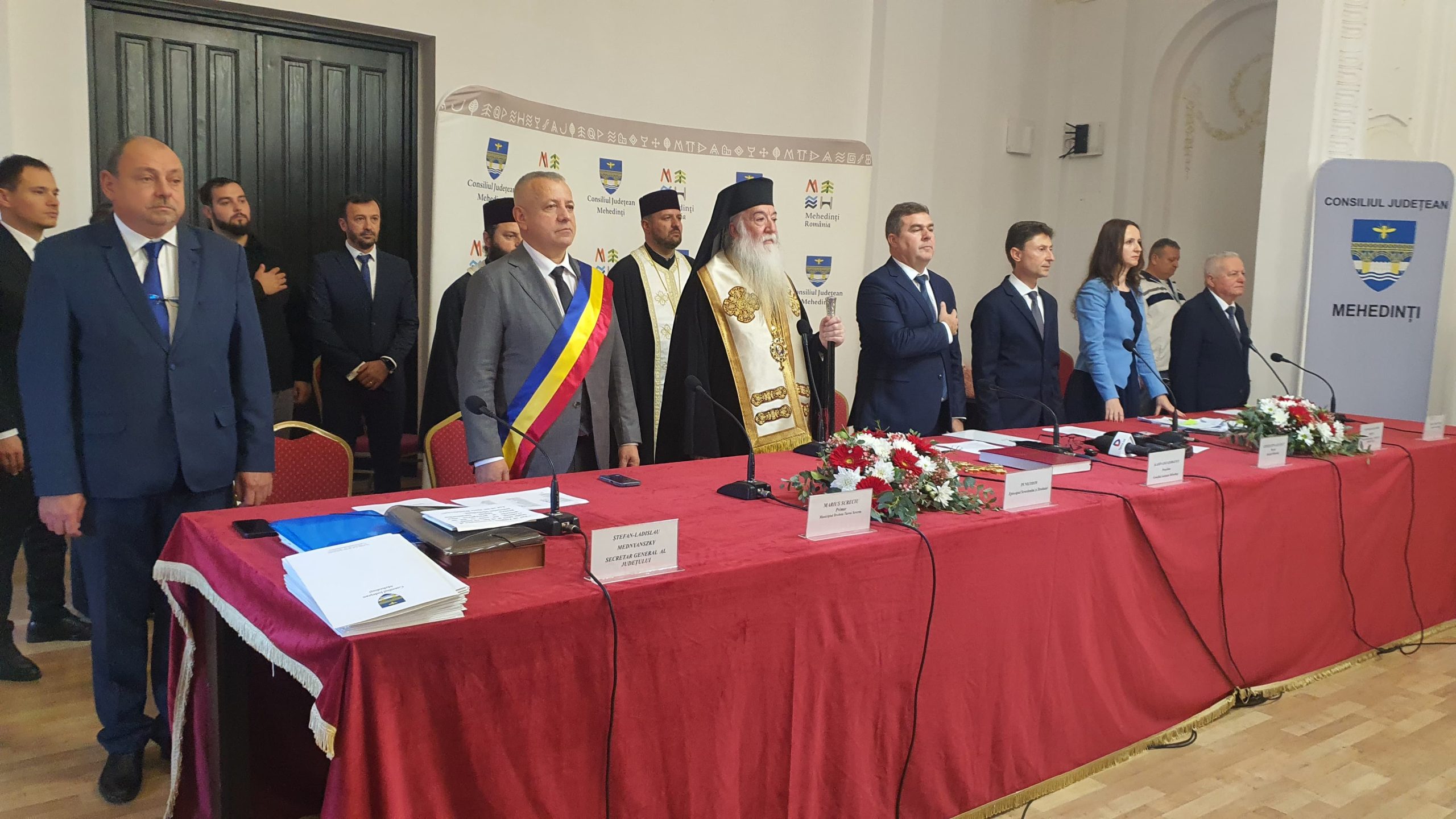 Astăzi, la Consiliul Județean Mehedinți, a avut loc ceremonia de depunere a jurământului pentru noul mandat al președintelui Aladin Georgescu.