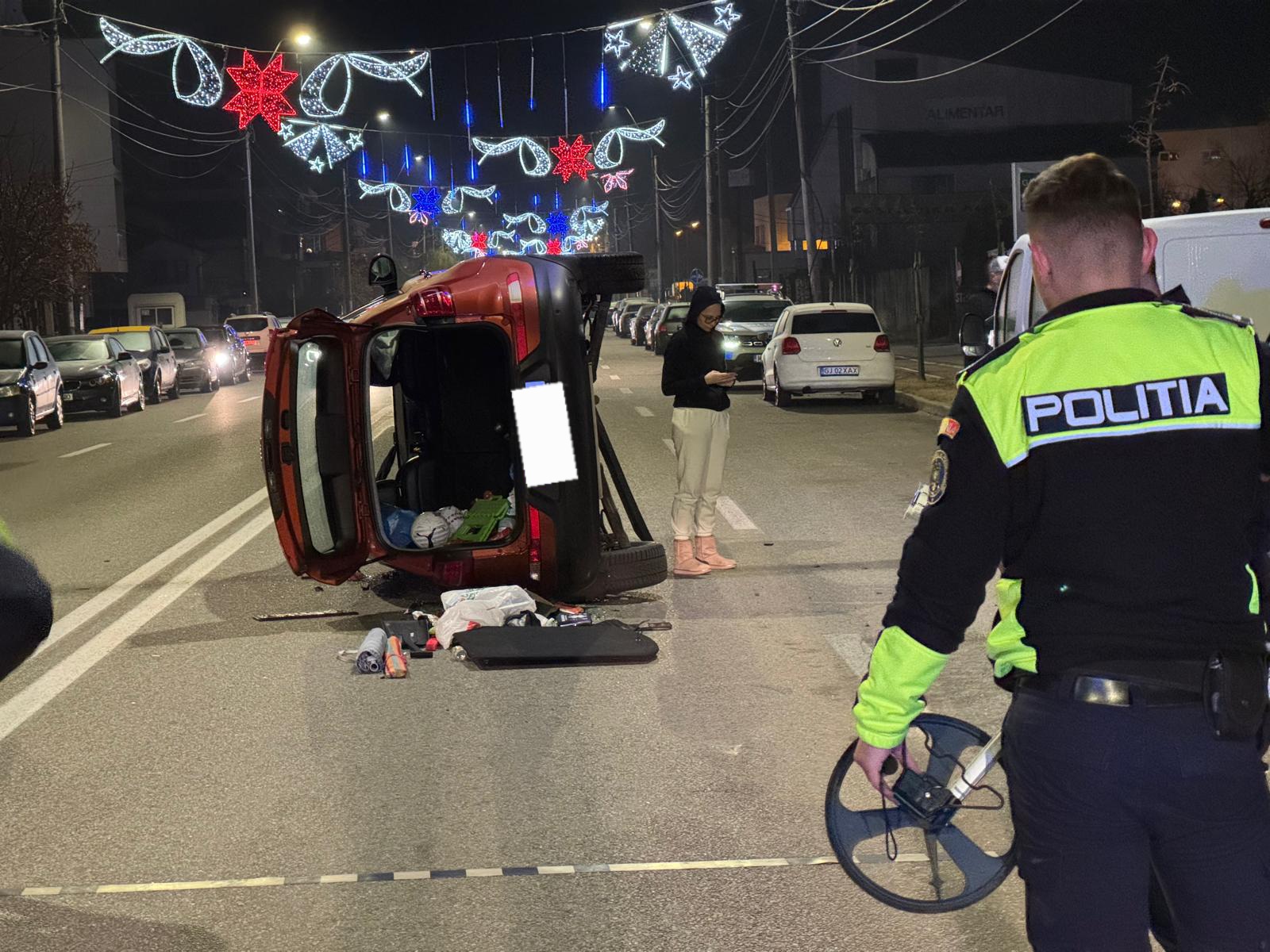În această seară, pe Bulevardul Aluniș din Drobeta-Turnu Severin, o tânără a pierdut controlul volanului într-un sens giratoriu, iar autoturismul pe care îl conducea s-a răsturnat.