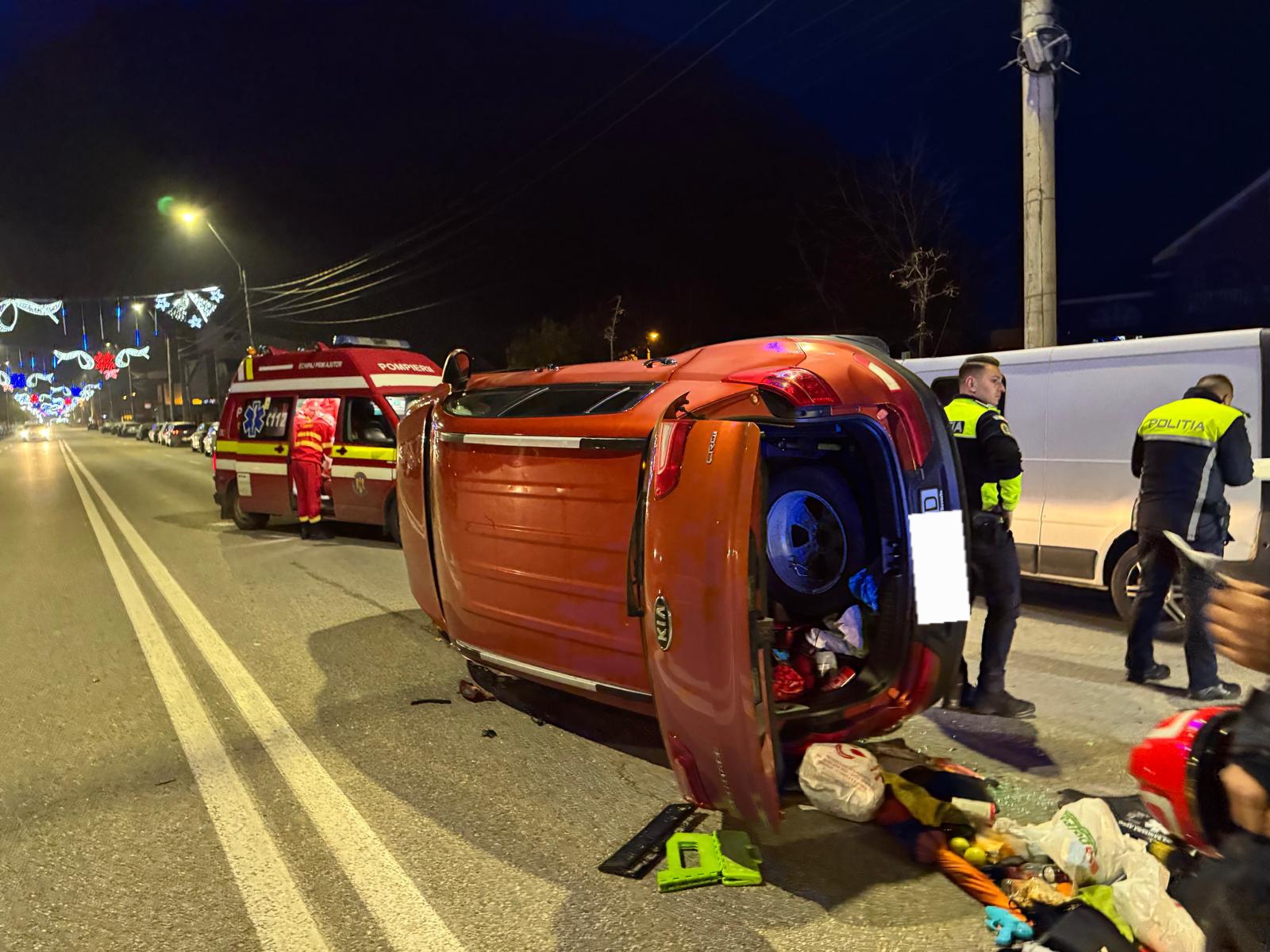 În mașină se aflau șoferița și trei minori. În urma accidentului, cei trei copii au fost transportați de urgență la Spitalul Județean pentru investigații medicale. Starea lor de sănătate urmează să fie evaluată de către cadrele medicale.