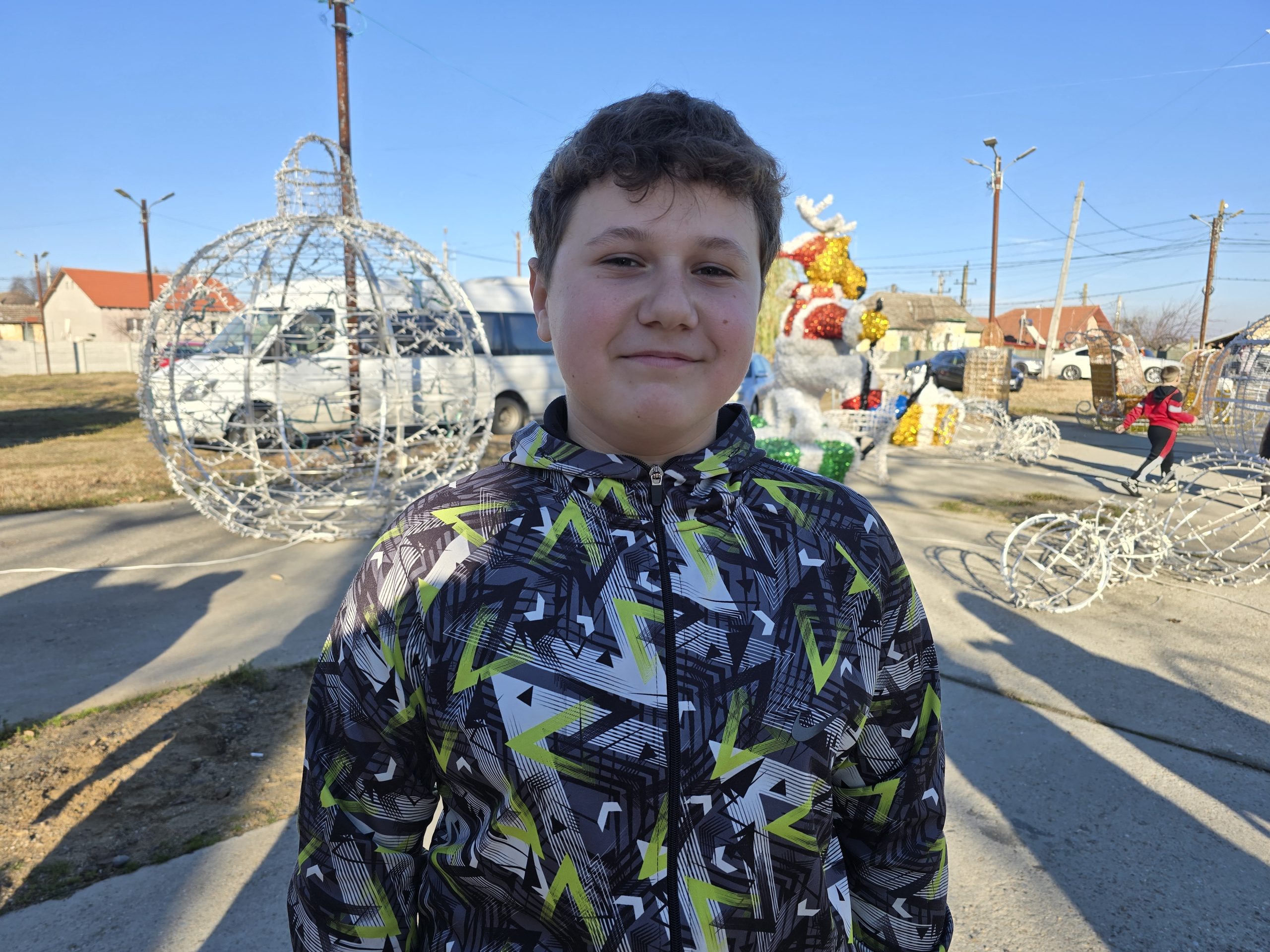 „Da, mi-a adus un tricou cu Moș Crăciun, un arici, dulciuri, caiete, rechizite. La serbare toți am cântat foarte bine, mi se pare că eu am cântat cel mai bine,” ne-a spus, zâmbind larg, Alex, unul dintre micii colindători.