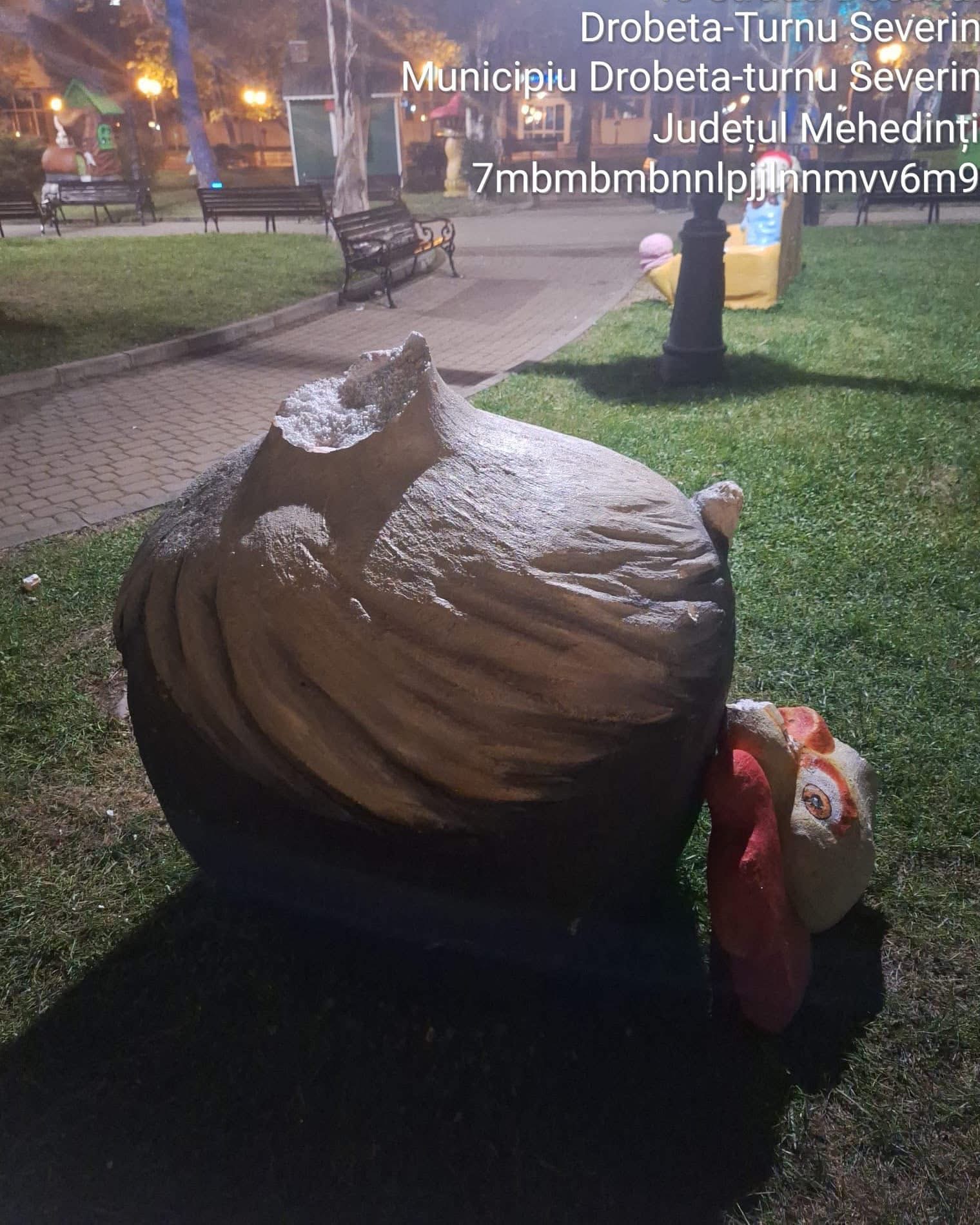 Seara trecută, doi minori au fost surprinși în timp ce vandalizau ornamentele de Paște amplasate în parcul central din Drobeta Turnu Severin. Cei doi copii, au început să lovească puternic una din figurine și nu s-au lăsat păgubași până nu au și distrus-o. Minorii erau însoțiți de bunici care ori nu au observat incidentul ori l-au tratat cu nepăsare.