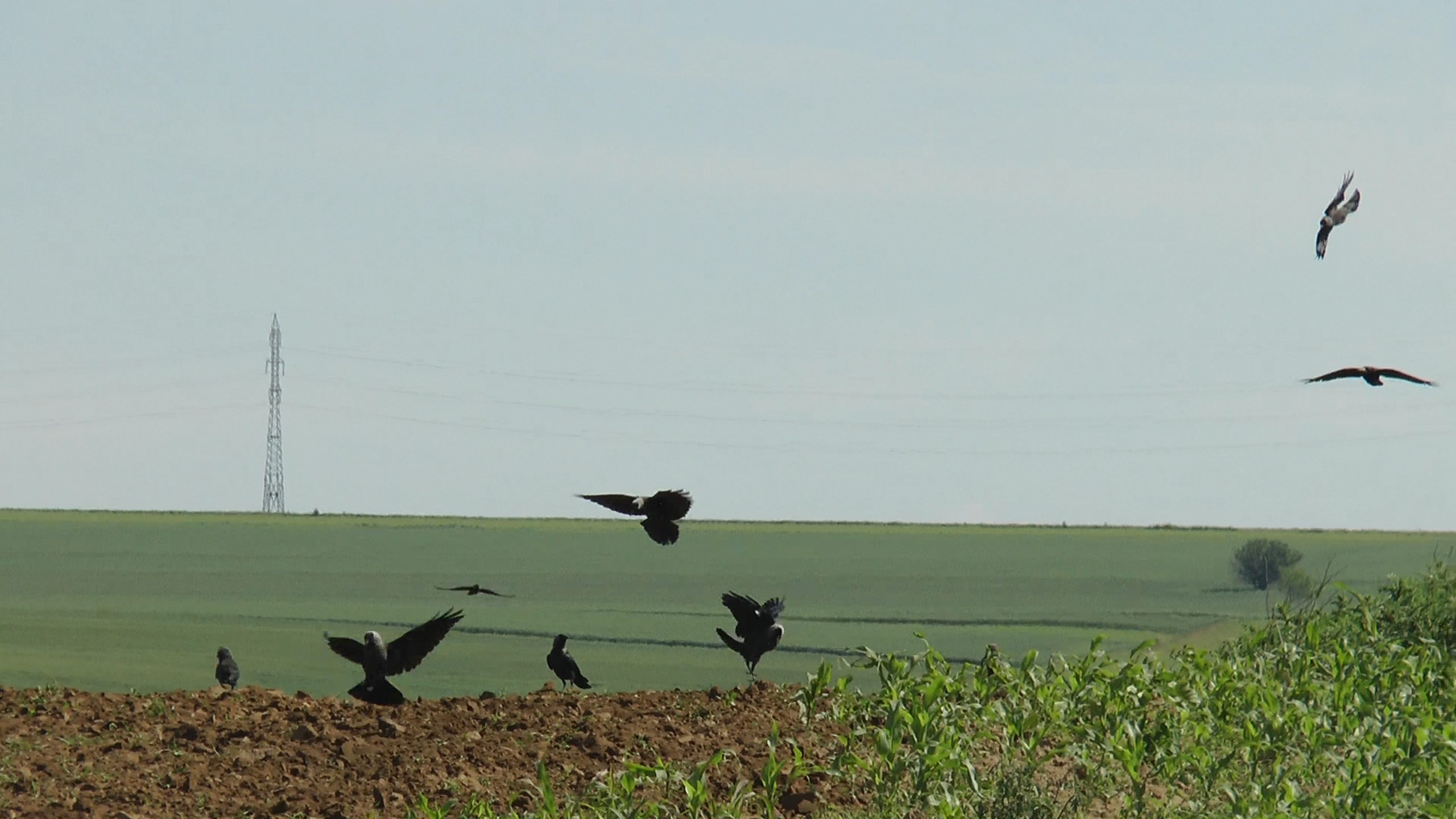 „Întorc 20 de hectare pentru că au fost mâncate de ciori. După tractor vin sute de păsări. Distrug tot, mai ales când plantele sunt abia răsărite”, spune un fermier din zonă.