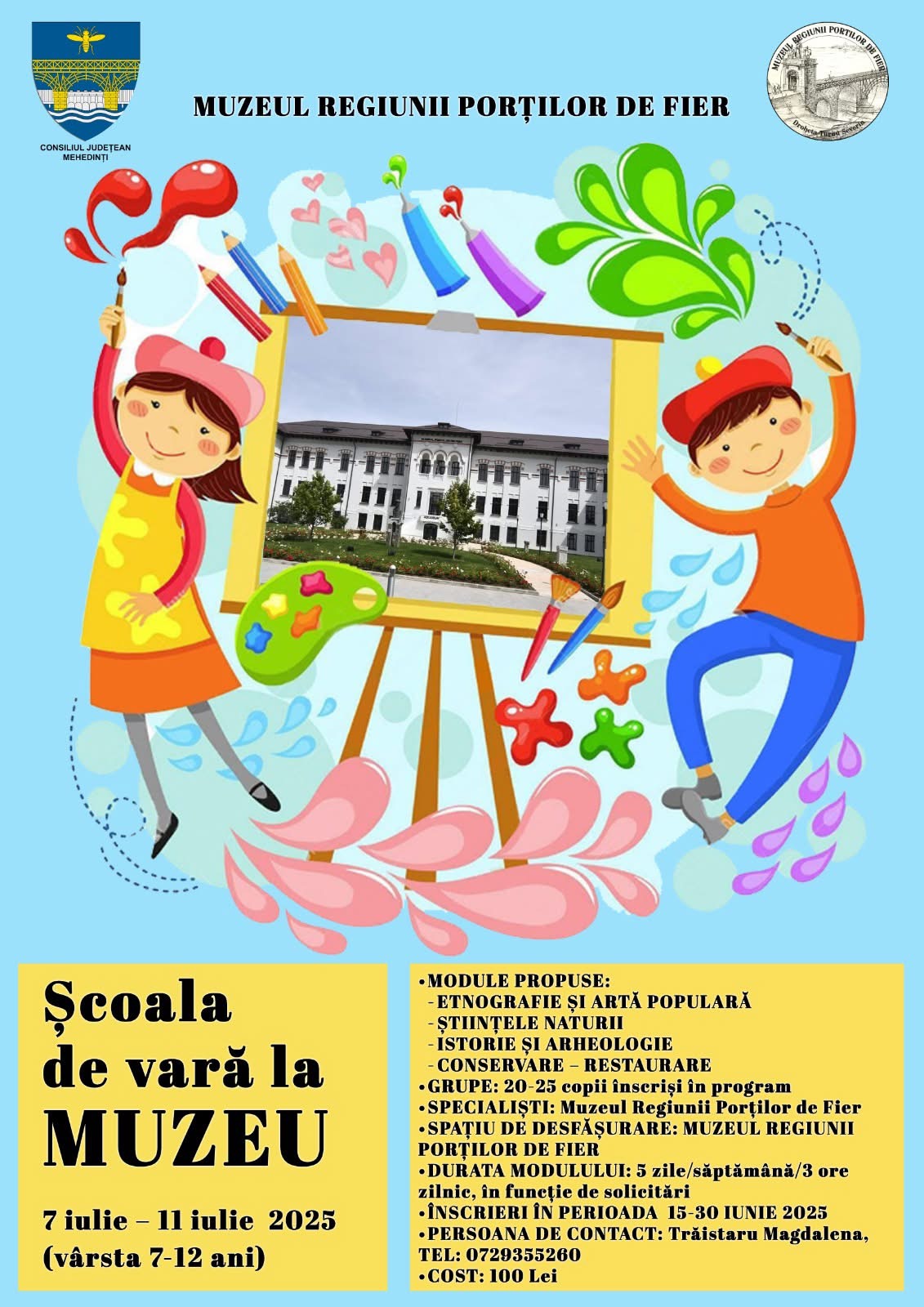 Muzeul Regiunii Porților de Fier organizează, în perioada 7 – 11 iulie 2025, o nouă ediție a programului educațional „Școala de vară la muzeu”, dedicat copiilor cu vârsta cuprinsă între 7 și 12 ani.