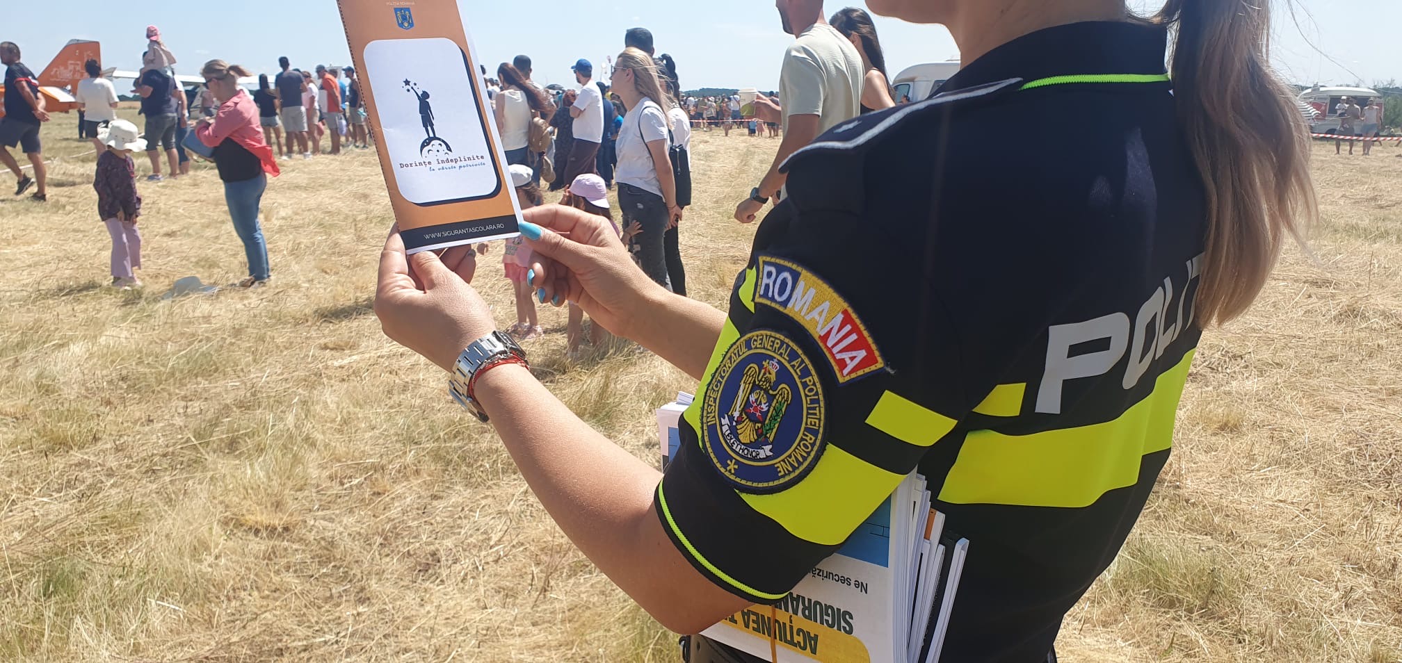 „Astăzi, 28 iunie, polițiștii Biroului Siguranță Școlară, Compartimentului pentru Analiza și Prevenirea Criminalității, Biroului pentru Protecția Animalelor, Serviciului Rutier și Secției de Poliție Rurală Șimian au desfășurat o acțivitate informativ-preventivă în cadrul spectacolului aeronautic ‘DROBETA FLY IN 2025’ – Ediția a XVIII-a, organizat pe raza localității Balota.”