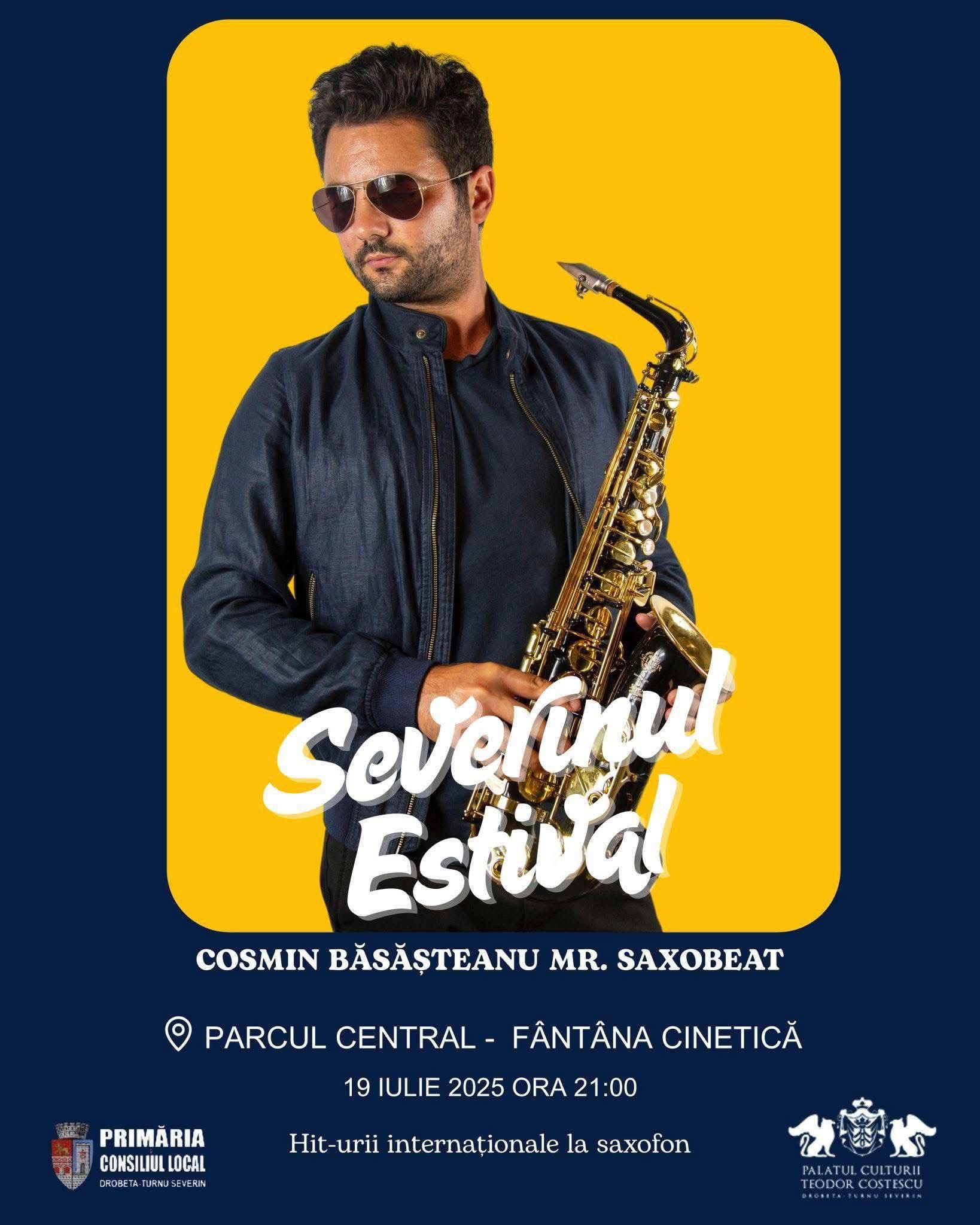 Sâmbătă, 19 iulie, de la aceeași oră, în Parcul Central (zona Fântânii Cinetice), publicul se va bucura de un recital de muzică live susținut de Cosmin Băsășteanu, cunoscut drept Mr. Saxobeat. Artistul va aduce pe scenă hituri internaționale interpretate la saxofon. Intrarea este liberă.