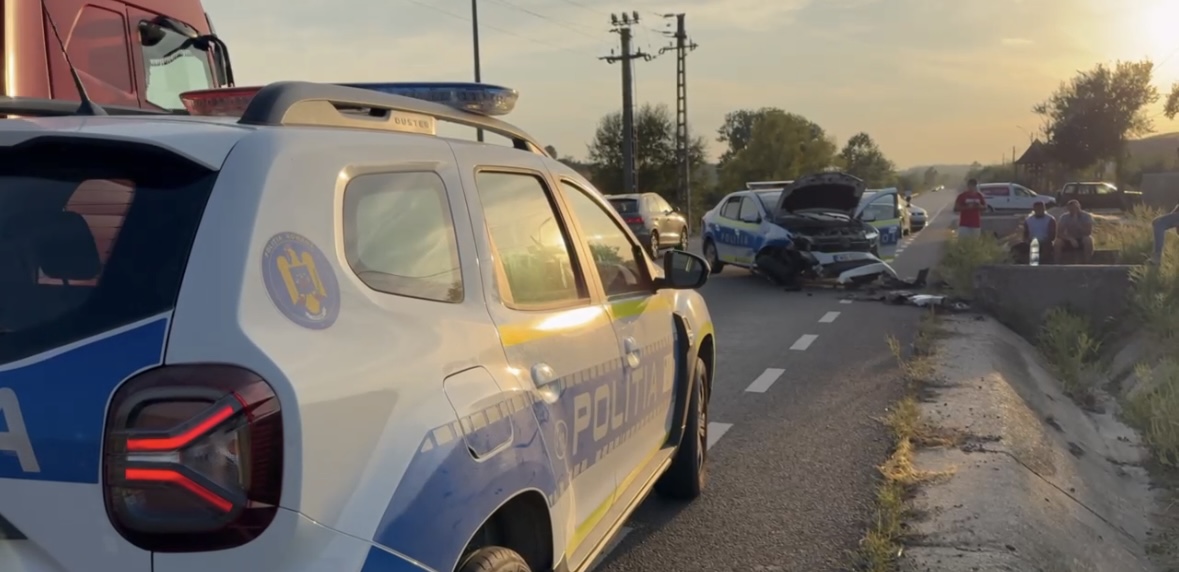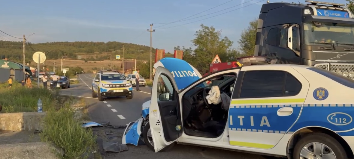 Accident cu o mașină de poliție în Prunișor: arestatul și agenții, răniți și transportați la spital
