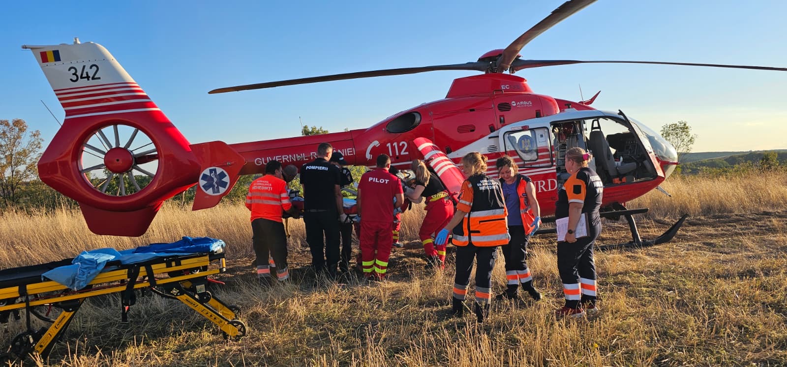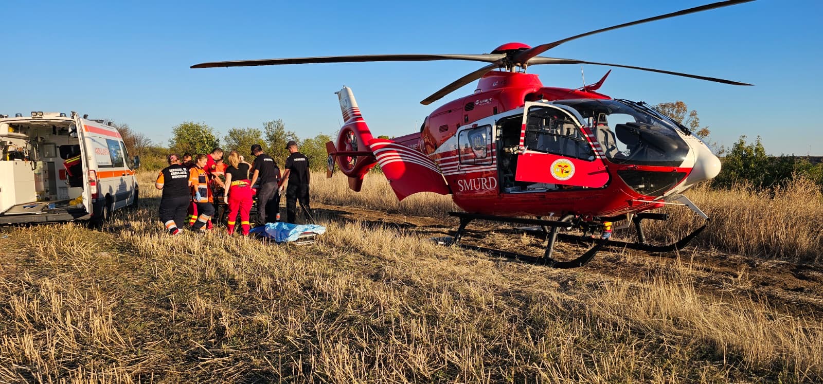 Victima a suferit arsuri pe o mare parte din corp și a fost transportată de urgență cu un elicopter SMURD la o unitate medicală de specialitate.