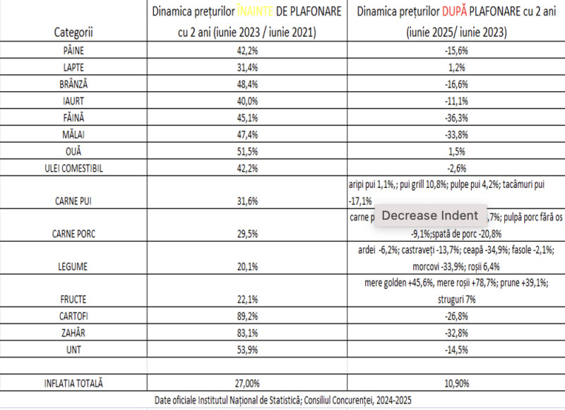 „La 2 ani de la plafonarea marjei comerciale, s-a reușit reducerea prețurilor la toate alimentele cu marjă plafonată (cu încetinirea creșterii prețurilor la lapte, ouă, aripi de pui, roșii și creștere la fructe proaspete) (date oficiale Consiliul Concurenței). Inflația la bunurile alimentare după 1 an de plafonare a ajuns la 1,1% (față de 18% înainte), iar puterea de cumpărare pe coșul de consum alimentar de bază a crescut”, se arată în documentul PSD.