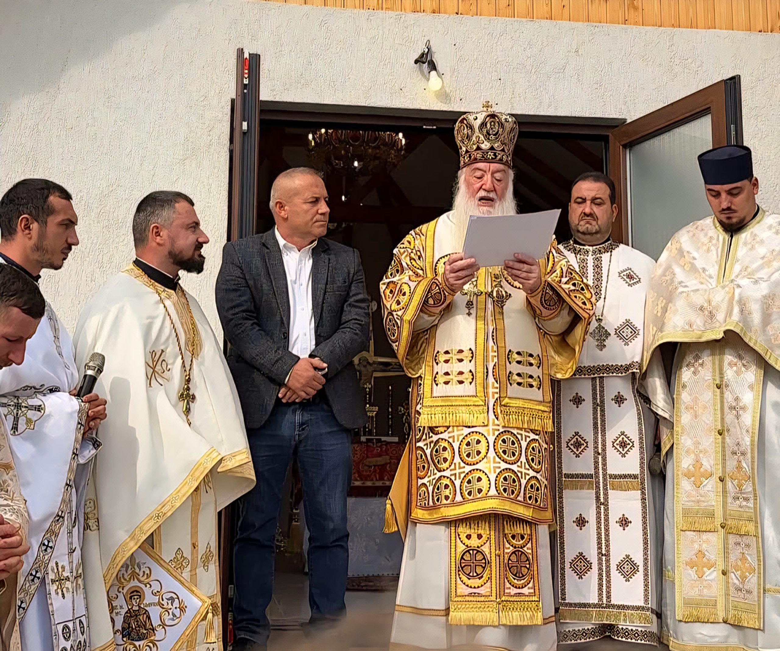 Slujba de sfințire a fost oficiată de Preasfințitul Părinte Nicodim Nicolăescu, Episcopul Severinului și Strehaiei, alături de un sobor de preoți, printre care s-a aflat și părintele paroh Marian Covrig.