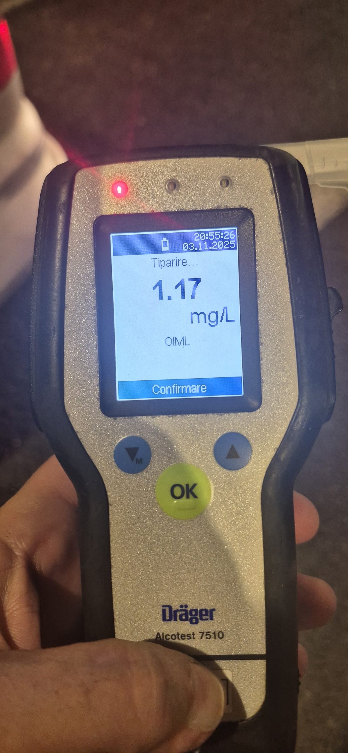 La doar o oră distanță, în orașul Strehaia, un alt conducător auto, în vârstă de 49 de ani, din județul Dolj, a fost prins băut la volan pe strada Republicii. Aparatul etilotest a indicat o valoare îngrijorătoare de 1,17 mg/l alcool în aerul expirat – de peste două ori limita care transformă fapta în infracțiune.