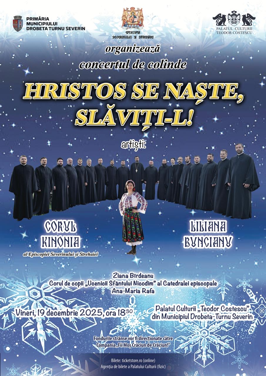 Spiritul Crăciunului se revarsă din nou la Drobeta-Turnu Severin, unde tradiționalul concert de colinde „Hristos Se naște, slăviți-L!” va avea loc anul acesta vineri, 19 decembrie 2025, de la ora 18:30, în Sala Mare a Palatului Culturii „Teodor Costescu”.
