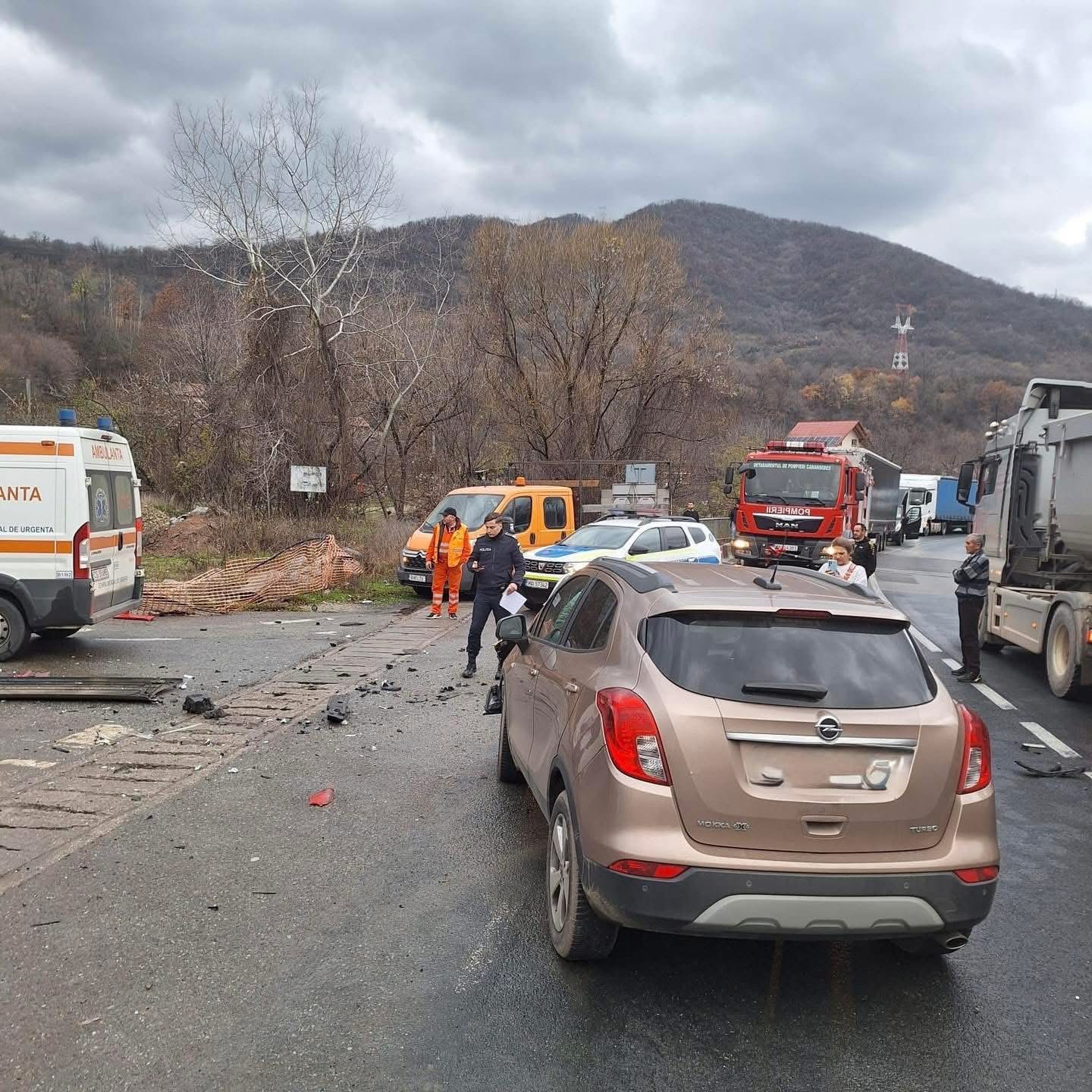 Un accident rutier a avut loc, astăzi, în zona localității Topleț, unde traficul se desfășoară îngreunat, pe o singură bandă.