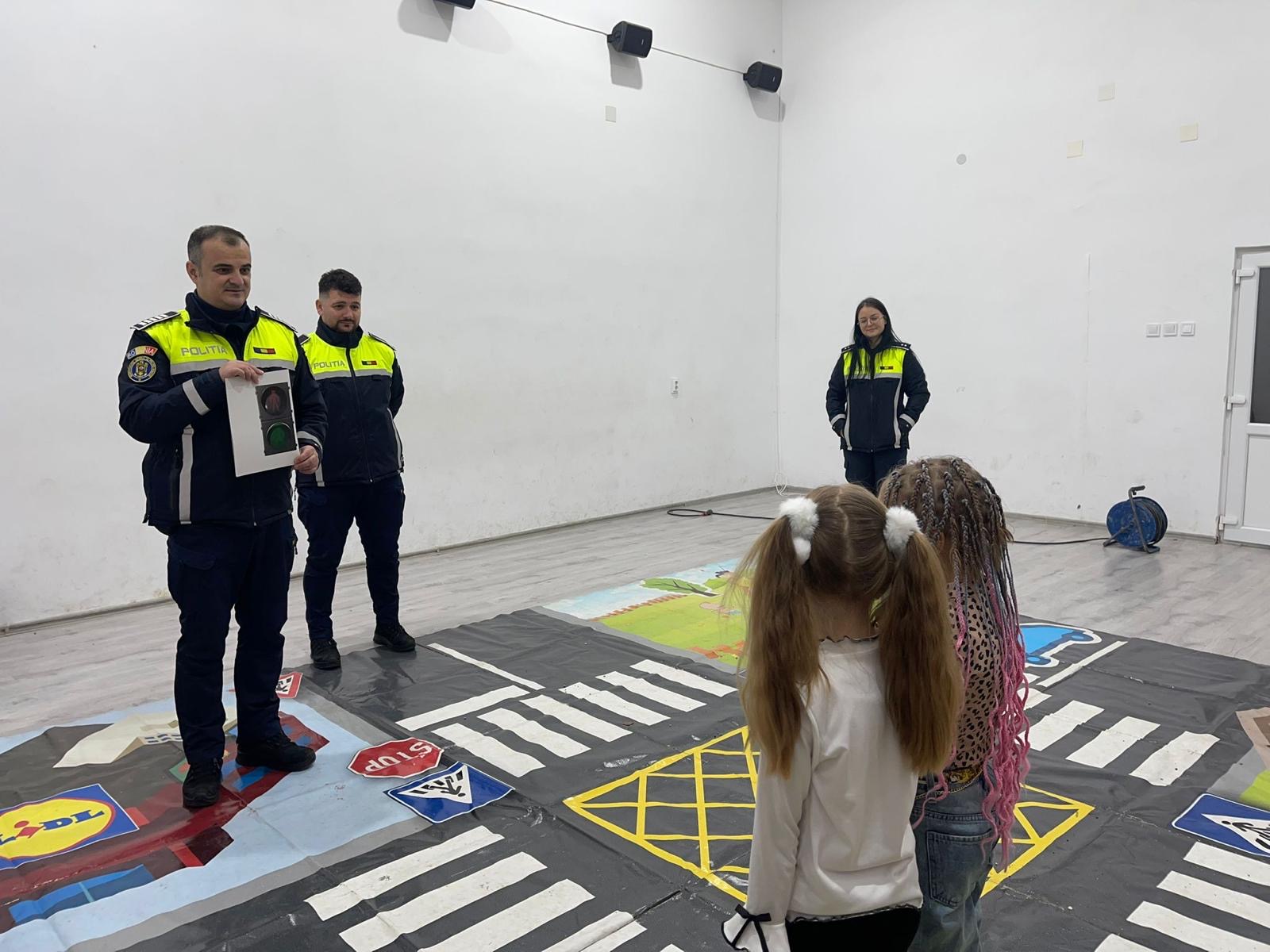 Pe înțelesul copiilor, polițiștii le-au explicat cum pot circula în siguranță cu trotineta, bicicleta sau rolele, dar și care sunt regulile corecte de traversare a străzii. Elevii au aflat cât de important este să recunoască semnele de circulație din apropierea școlii și a locuinței și să adopte un comportament preventiv în trafic, fie că sunt pietoni, fie pasageri în autovehicule.