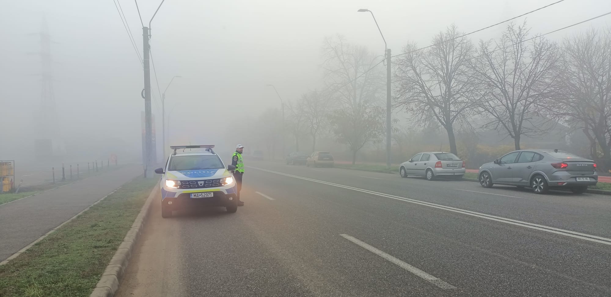 Inspectoratul de Poliție Județean Mehedinți atrage atenția conducătorilor auto asupra riscurilor crescute în trafic, generate de ceața densă prezentă pe mai multe sectoare de drum din județ.