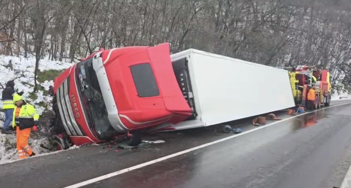 Traficul în zonă se desfășoară cu dificultate, iar autoritățile rămân în alertă până la degajarea completă a drumului și recuperarea mărfii.