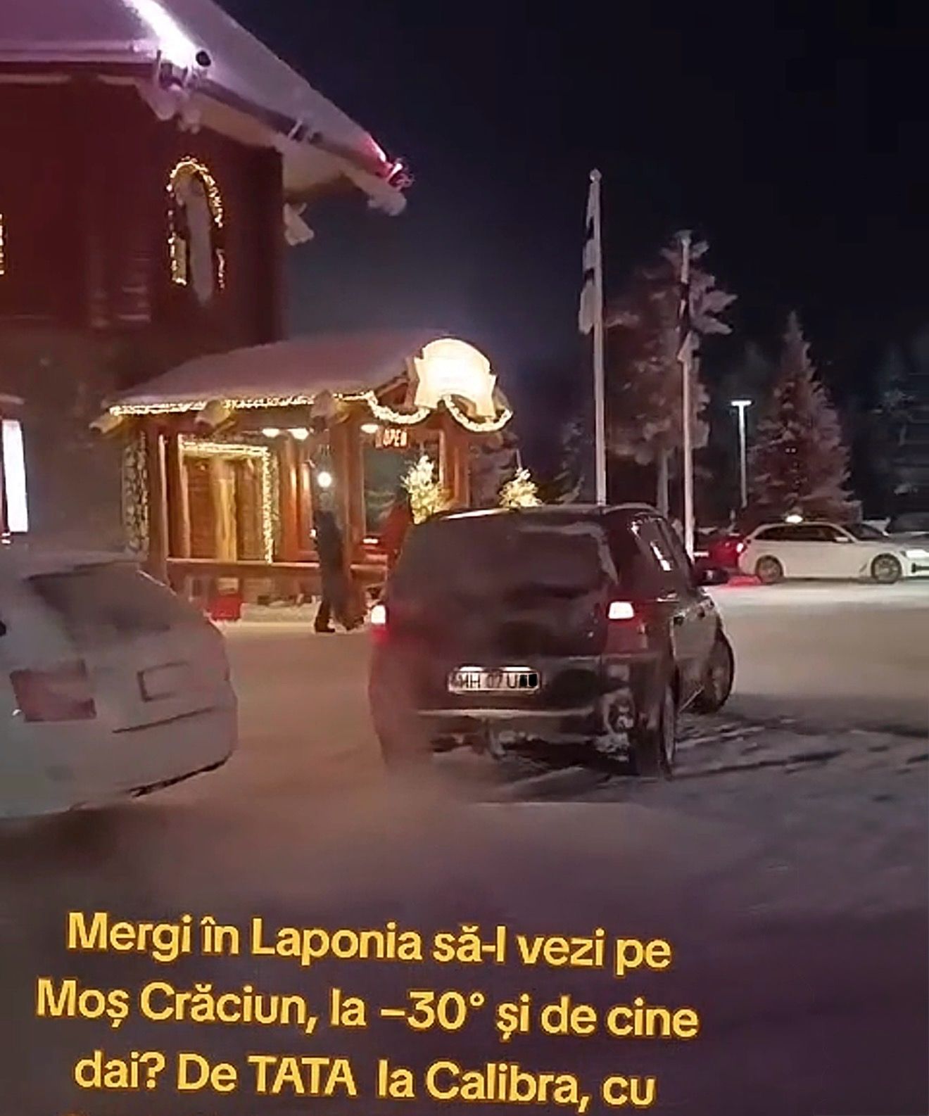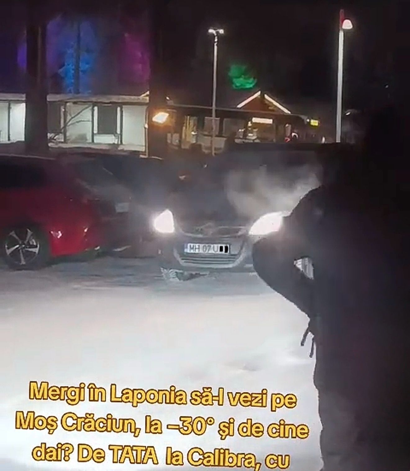 Un clip postat pe TikTok arată un autoturism înmatriculat în județul Mehedinți, surprins pe drumurile acoperite de zăpadă, dintr-o zonă turistică a Laponiei, nordul Finlandei.