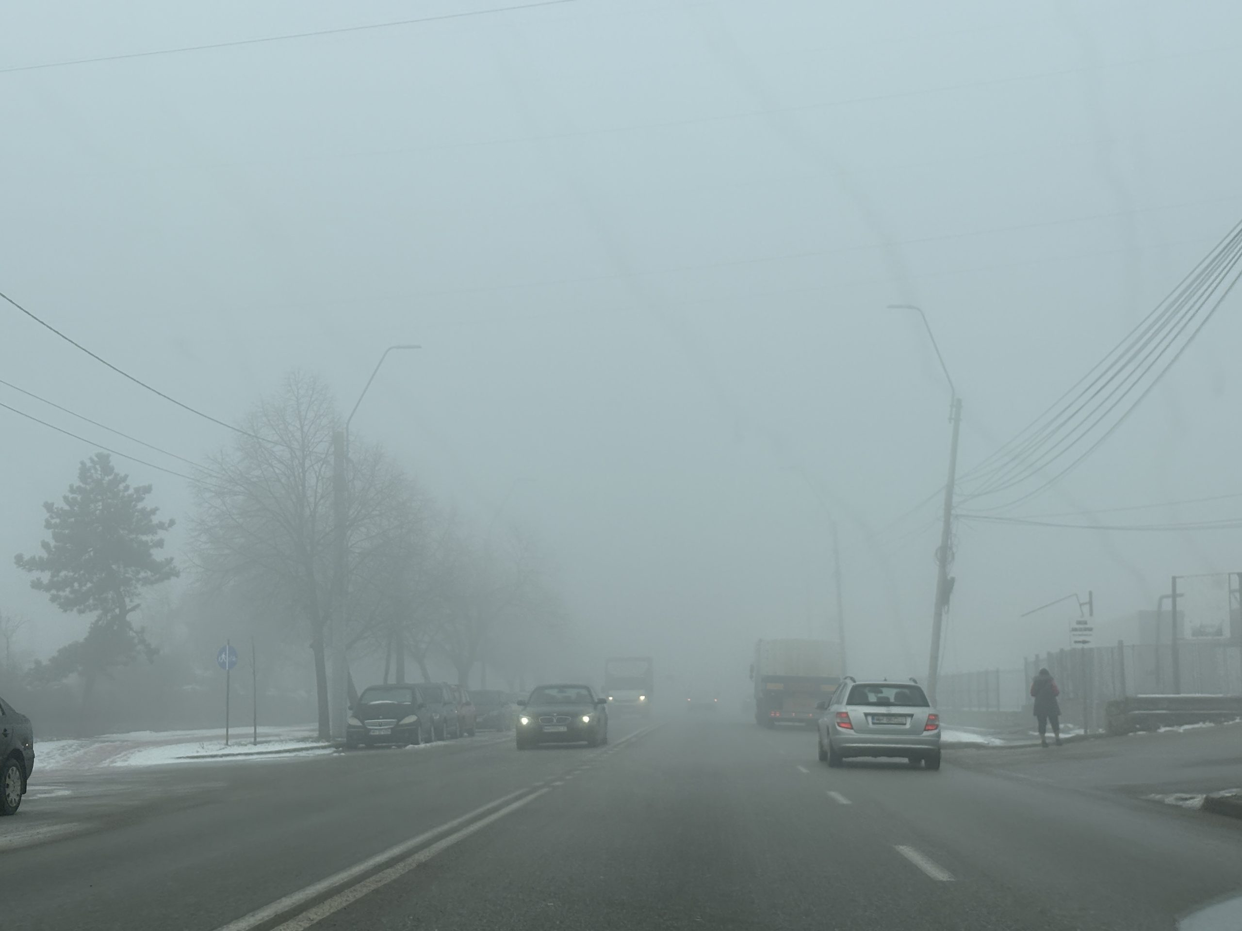 Polițiștii atrag atenția că frânările bruște pot provoca accidente, întrucât ceilalți participanți la trafic pot observa târziu luminile de frână din cauza ceții dense.