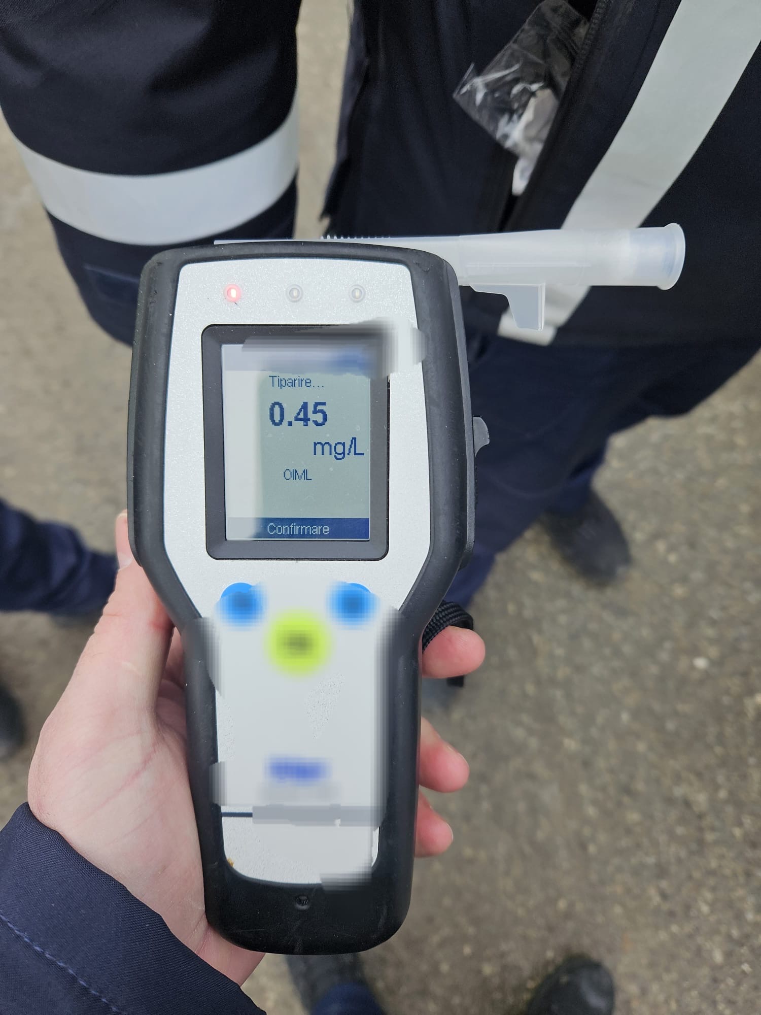 În urma testării cu aparatul alcooltest, rezultatul a indicat 0,45 mg/l alcool pur în aerul expirat, motiv pentru care șoferul a fost condus la spital pentru recoltarea probelor biologice necesare stabilirii alcoolemiei.