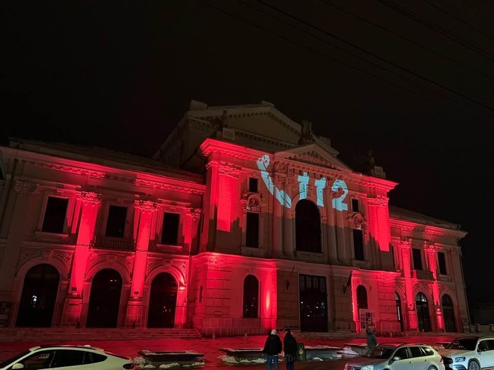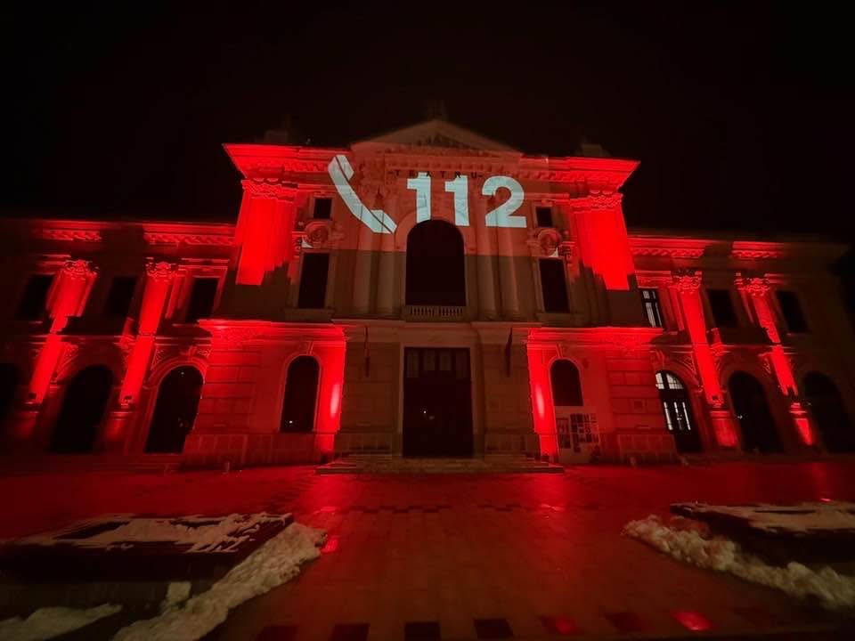 Clădiri iluminate în roșu la Drobeta Turnu Severin, de Ziua Europeană a Numărului Unic de Urgență 112