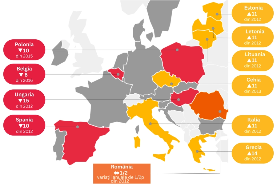 De peste 10 ani, România bate pasul pe loc la acest capitol. Față de 2012, am reușit să creștem doar cu un singur punct în clasament, ceea ce arată că progresele sunt foarte lente. Chiar și în cei mai buni ani ai noștri, România tot a fost sub media Uniunii Europene.