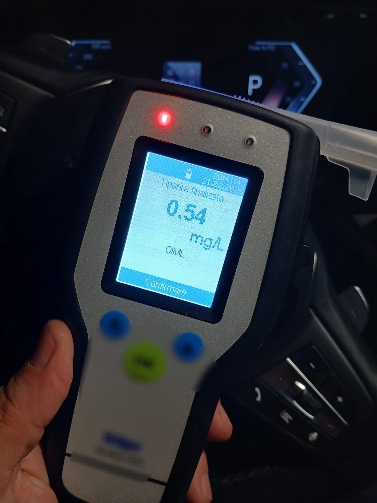 În urma testării cu aparatul alcooltest, a rezultat o valoare de 0,54 mg/l alcool pur în aerul expirat, peste limita legală care atrage răspunderea penală. Șoferul a fost condus la spital pentru recoltarea de mostre biologice, în vederea stabilirii alcoolemiei în sânge.
