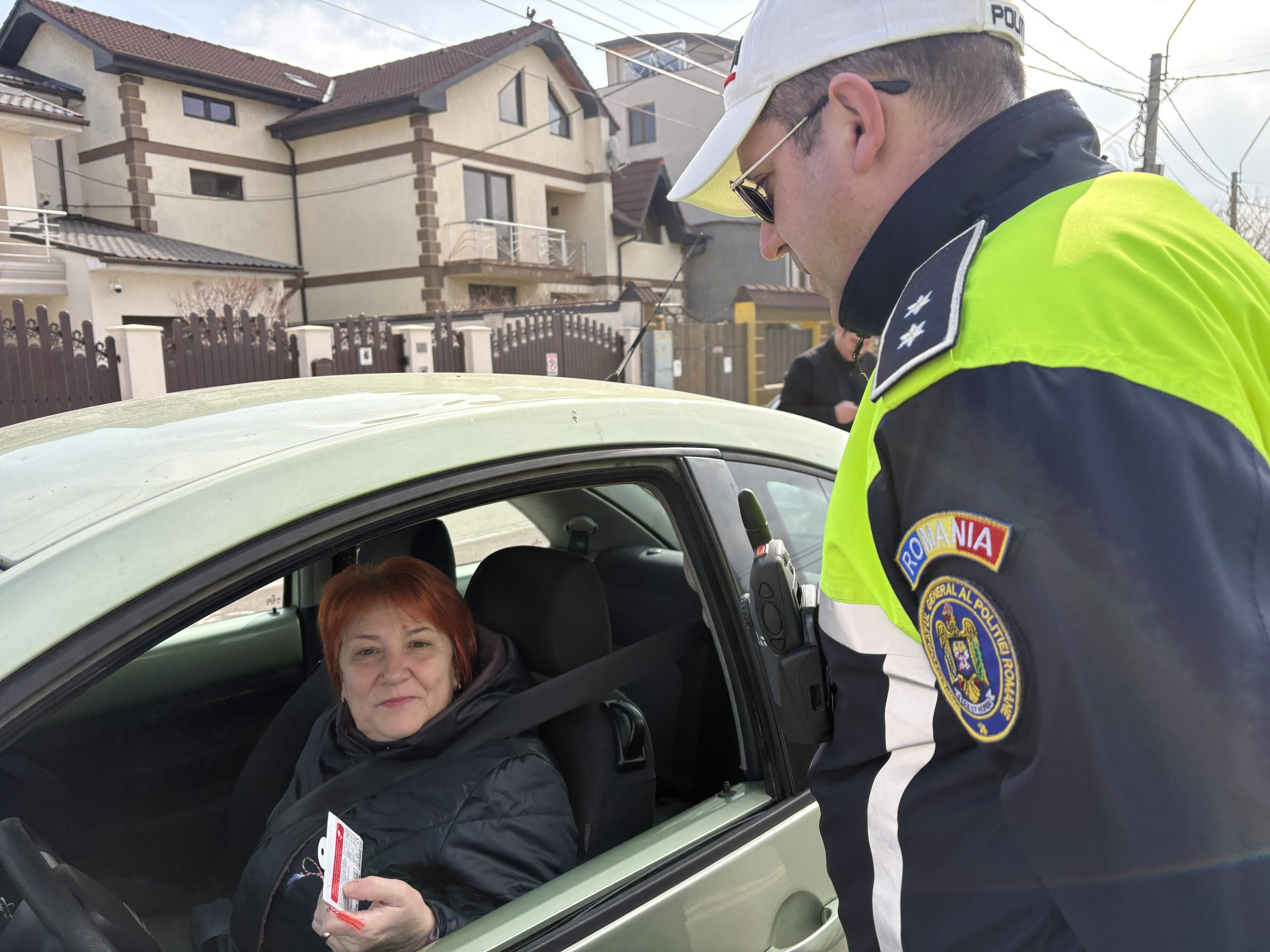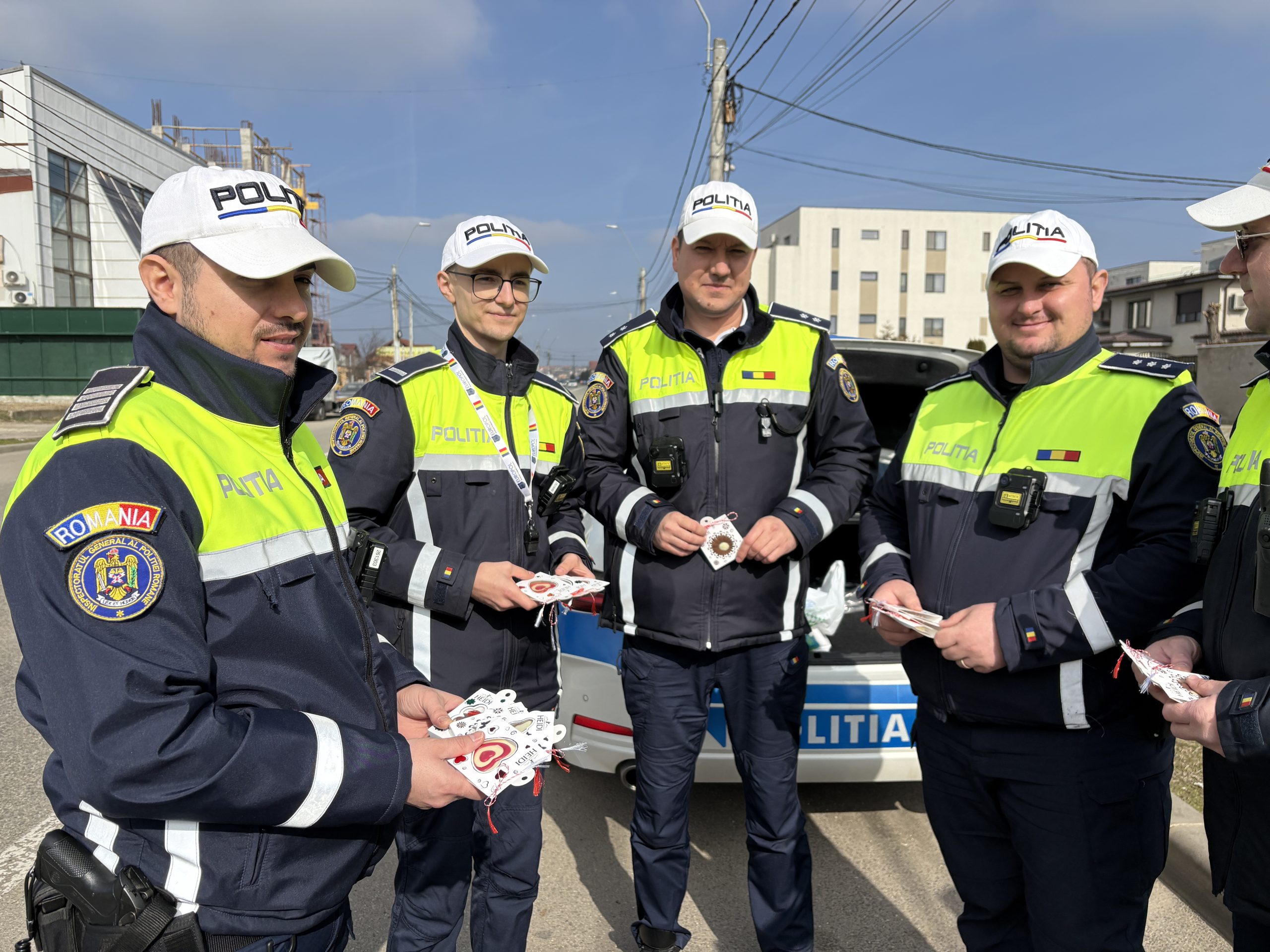 Conducătoarele auto au fost surprinse plăcut atunci când, în locul unui proces-verbal, au primit mărțișoare dulci și urări de primăvară frumoasă din partea polițiștilor.