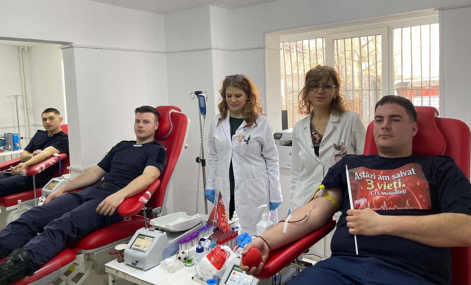 Gest de solidaritate din partea elevilor jandarmi aflați în practică la Inspectoratul de Jandarmi Județean Mehedinți. Tinerii au participat astăzi la o acțiune de donare de sânge, organizată în colaborare cu Centrul de Transfuzie Sanguină Drobeta Turnu Severin, în cadrul campaniei umanitare desfășurate pe parcursul lunii martie.