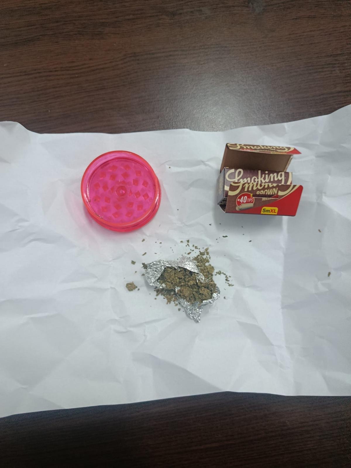 De asemenea, jandarmii au descoperit urme de substanțe similare într-un recipient din plastic, tip grinder, dar și o cutie cu foițe pentru rularea țigaretelor.