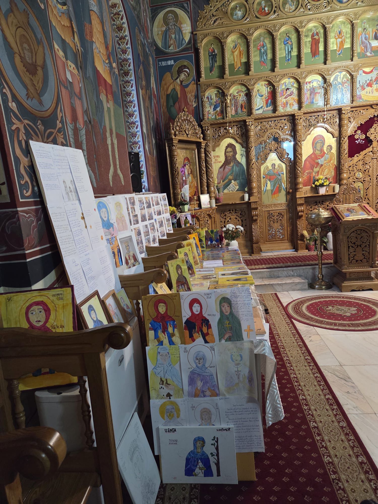 Copiii s-au implicat și au realizat o expoziție vineri pentru a prezenta icoanele pictate pe sticlă, cu cele 16 femei românce canonizate anul acesta, în cadrul atelierului de creație , compuneri, poezii ,alte lucrări, și un colț de fotografii cu activitățile derulate în această perioadă.