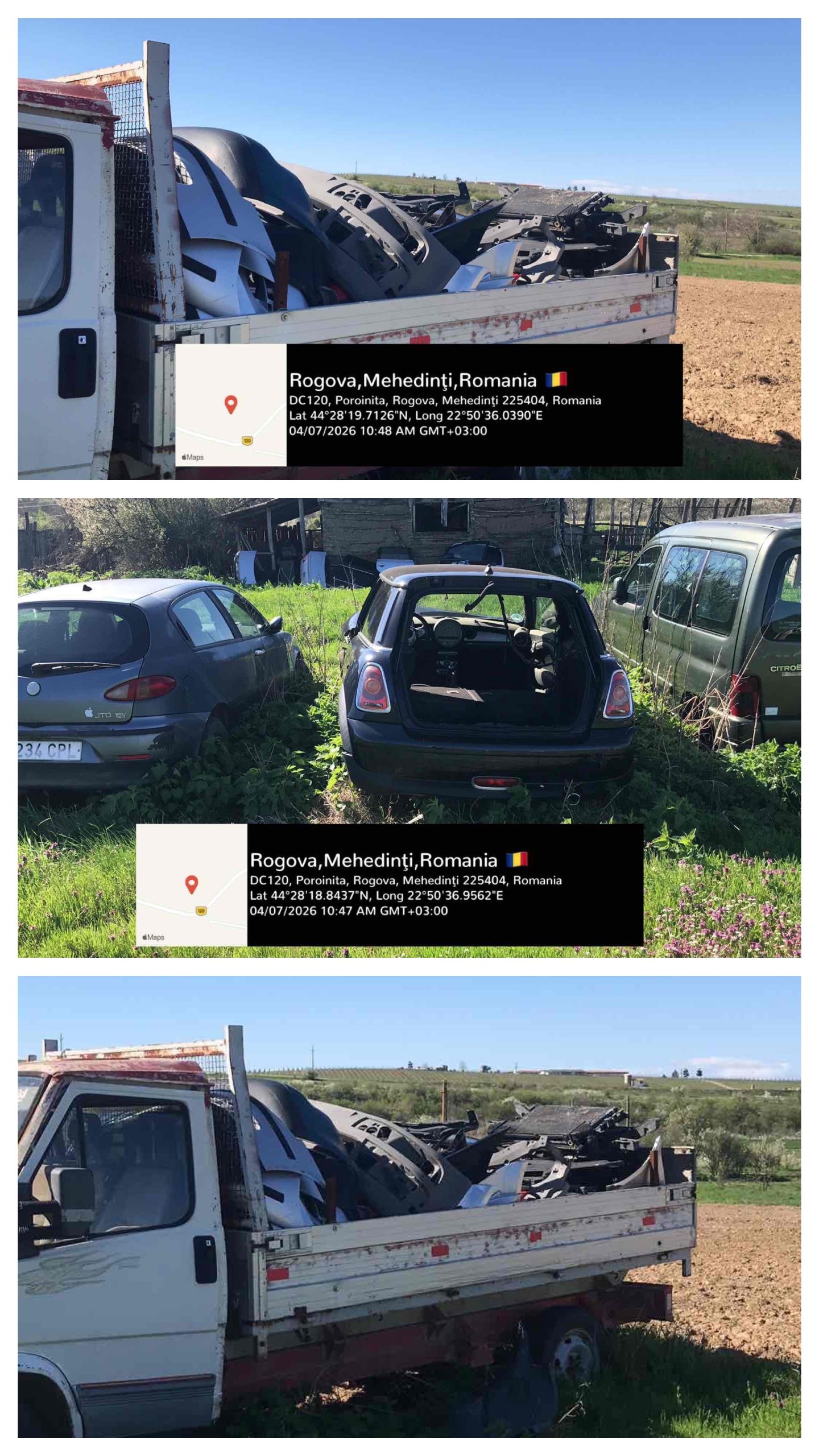11 mașini dezmembrate, descoperite pe un teren din Rogova